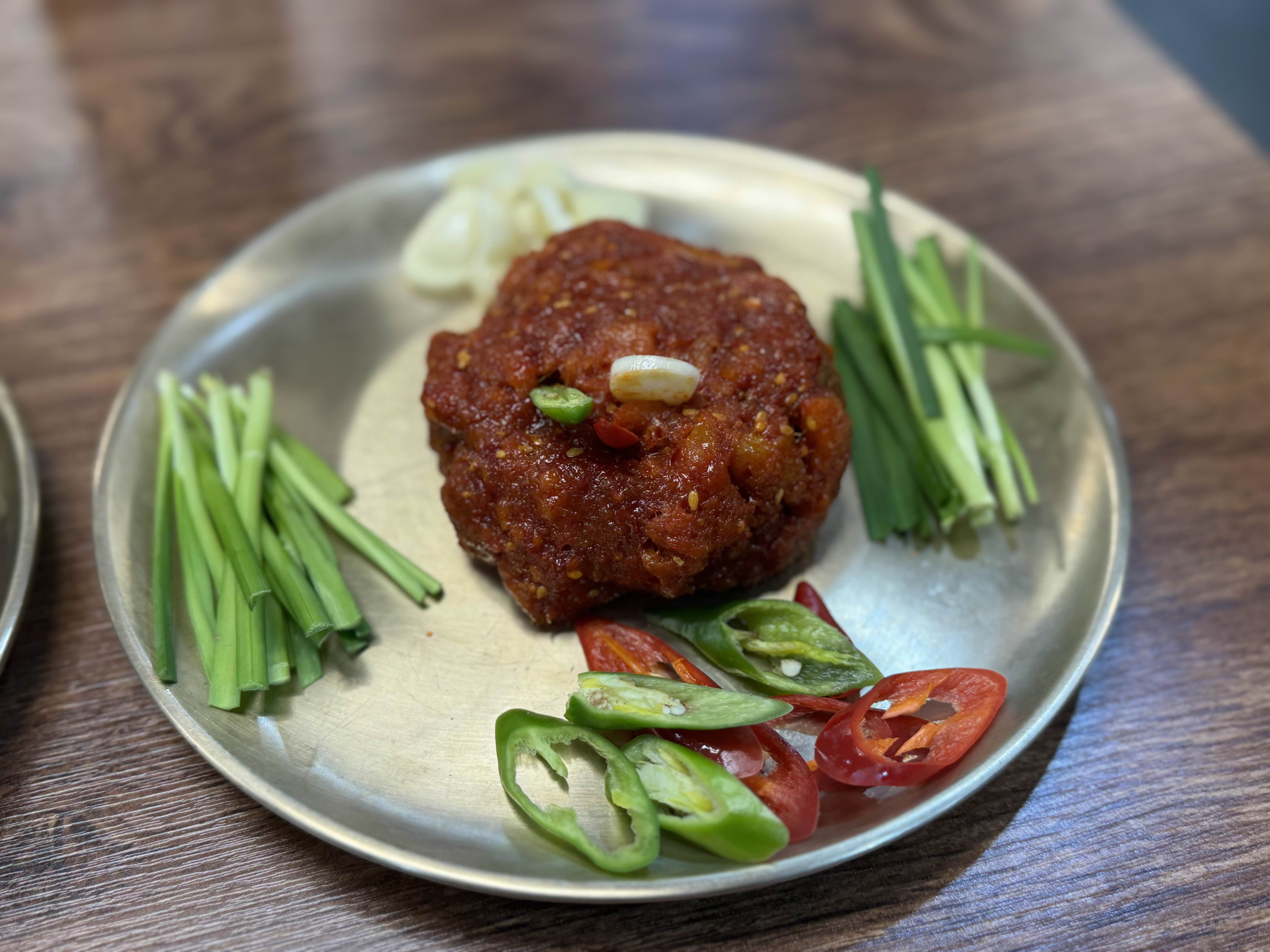 사이드 메뉴로 한우고기전과 명태회무침을 주문했는데, 이건 정말 ‘술안주 레전드’였어요! 한우고기전은 고기가 듬뿍 들어간 전이 한 입 베물 때마다 육향이 입안 가득 퍼지며 진한 맛이 폭발했답니다. 바삭하면서도 촉촉한 식감이 어우러져, 소주 한 잔을 부르는 마성의 매력! 옆에서 명태회무침을 맛보니 매콤함과 감칠맛이 공존하며 명태의 쫄깃한 식감을 배로 살려줬어요. 매콤한 양념이 혀끝을 자극하면서도 깔끔하게 넘어가는 맛에, 결국 소주 한 병을 추가 주문하고 말았죠. 이 조합은 ‘술꾼의 심장을 뛰게 하는 마법’이라 불러도 과언이 아니에요!